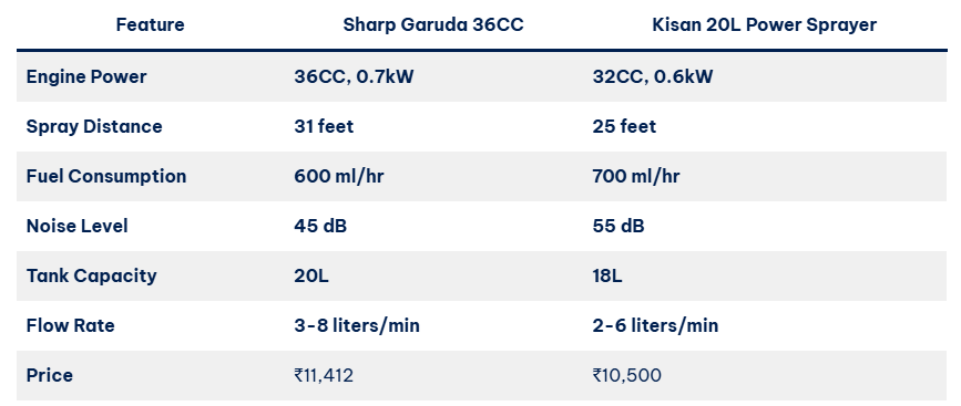 Chaliye, ab compare karte hain Sharp Garuda ko Kisan 20L Power Sprayer se. Kaise ye dono alag hain, dekhte hain: